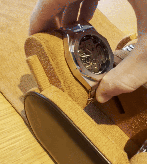 With slide-in rails, our watch roll provides a satisfying travel and storage experience for your favorite time-pieces.